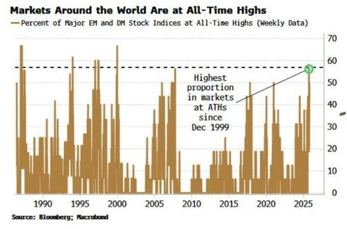 We are living in a moment where the highest percentage of global equity indexes are sitting at all-time highs since December 1999.