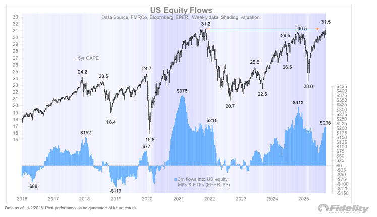Today, the 5-year CAPE ratio stands at 31.5x, placing valuations back in the rarefied altitude of the dot-com peak.