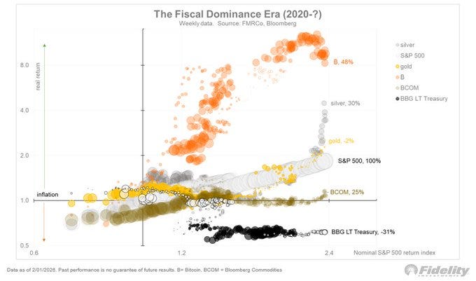 This is where your “fiscal dominance” framing becomes the emotional core of the note for me, because it’s about what happens when the old diversification tools stop behaving.
