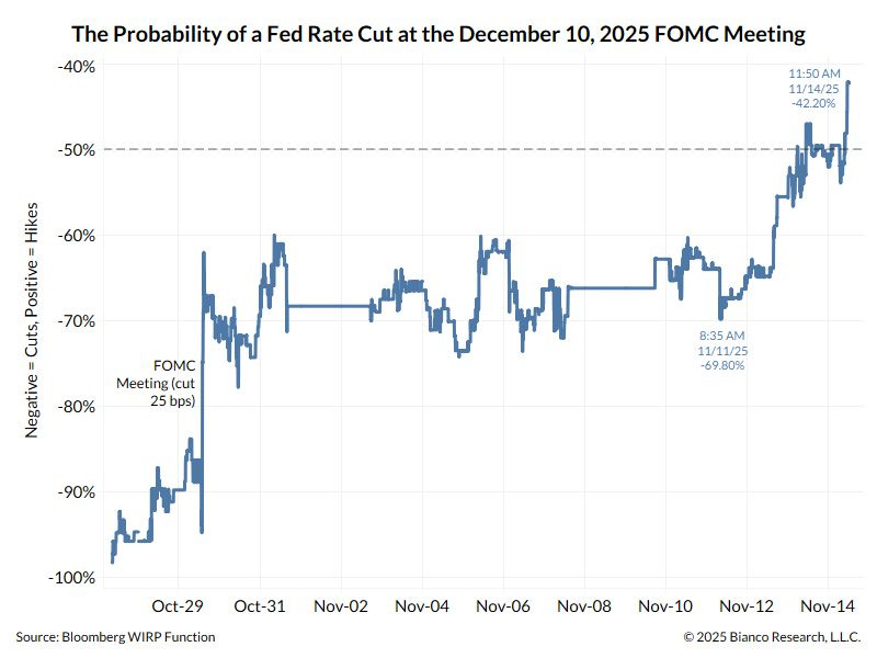 Just days ago, traders were assigning a 70% probability to a December rate cut.