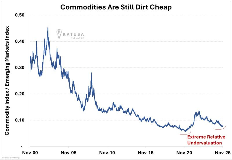 Every time I look at the Commodity Index relative to emerging markets - now sitting at a staggering 0.08× - I feel transported back to only two other moments in my career: 1999 - 2001 and 2015.