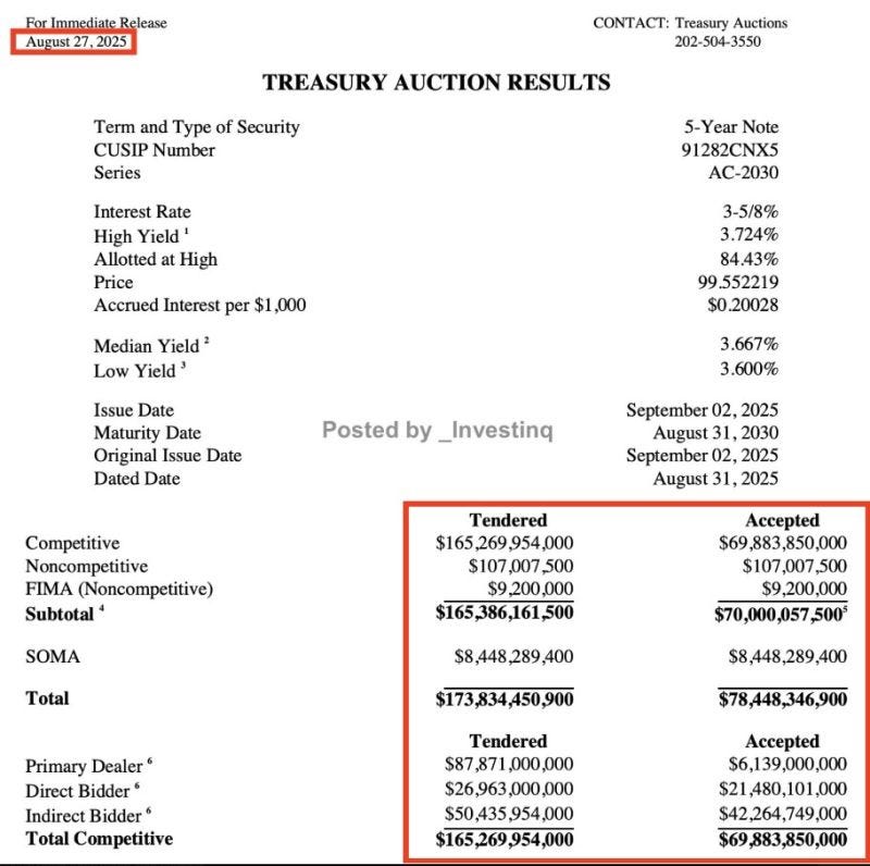 The bid-to-cover ratio came in at 2.36, hardly a stellar sign of demand.